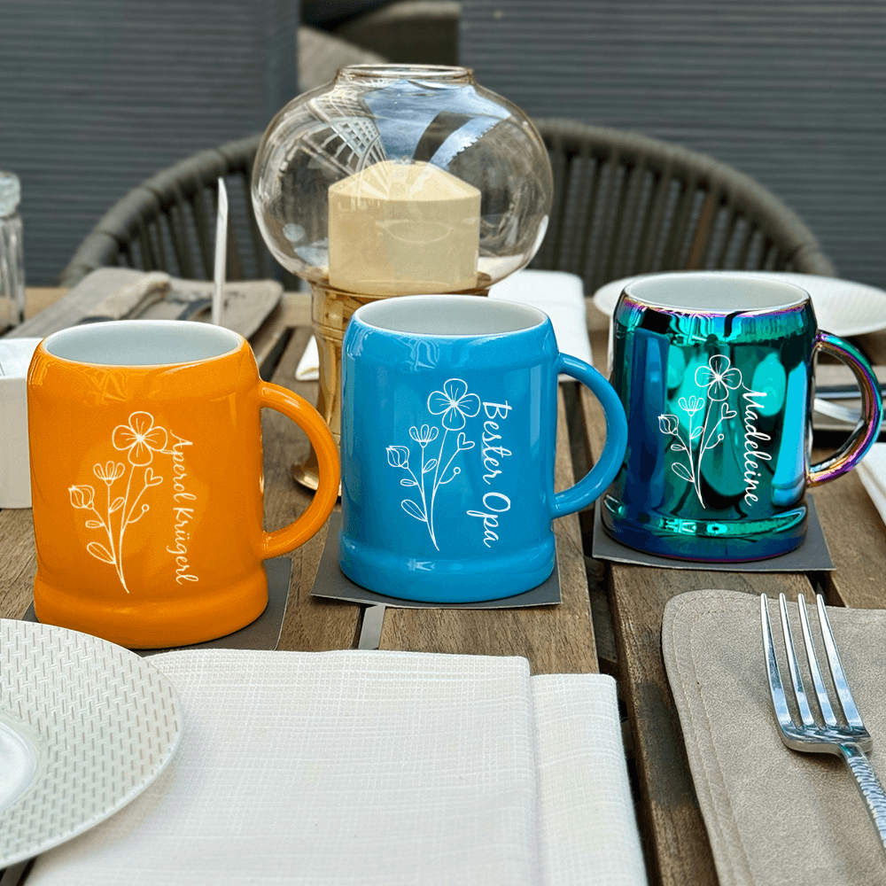 Ein Bund voller Blumen – und ein Name, der zählt. Dieser LOGOKRUG ist wie ein Blumenstrauß zum Festhalten: liebevoll gestaltet, mit feinen Blüten-Details und Platz für einen ganz besonderen Namen. Ob als Geschenk für deinen Lieblingsmenschen oder als tägliche Erinnerung daran, wie schön der eigene Name klingen kann – dieser Krug sagt: Ich denk an dich. Und zwar in jeder Pause. „Blumen verblühen – dieser Krug bleibt.“