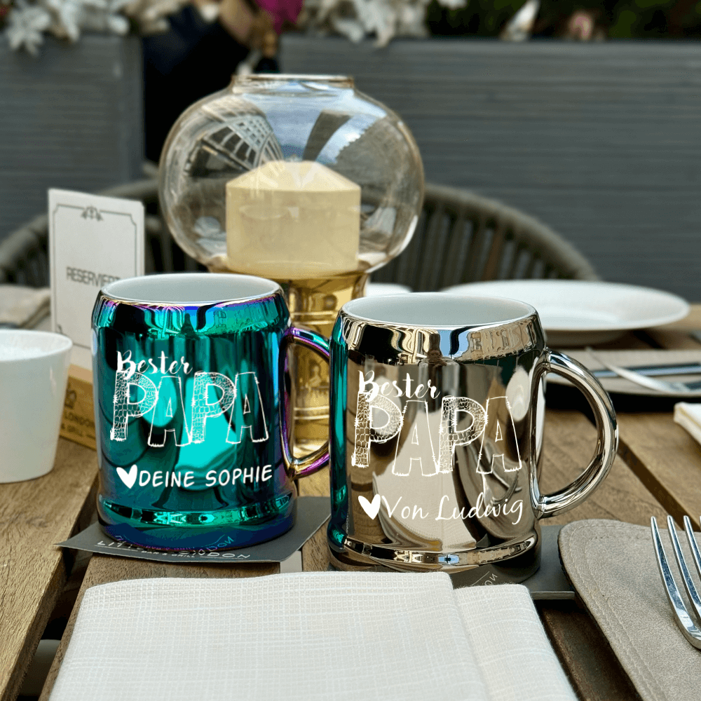 Ein LOGOKRUG für Papas mit Biss, Herz und Stil – individuell graviert und mit einem Muster, das Eindruck hinterlässt.