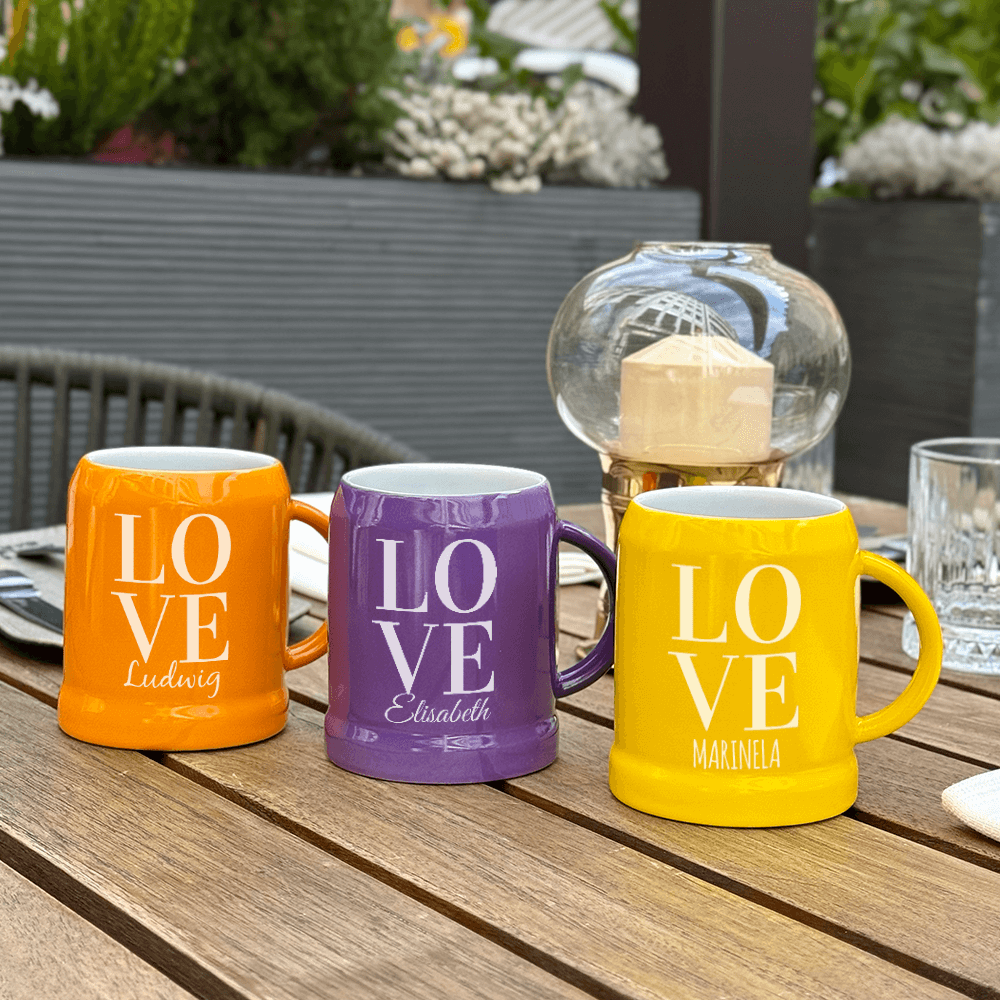 Dieses LOGOKRUG-Design sagt ganz klar LOVE – in stilvoller Zweizeilen-Optik – und bietet Platz für eine persönliche Gravur. Ob der Name deines Lieblingsmenschen, ein Kosename oder einfach ein stilles „Ich liebe dich“: Hier wird’s ganz persönlich.