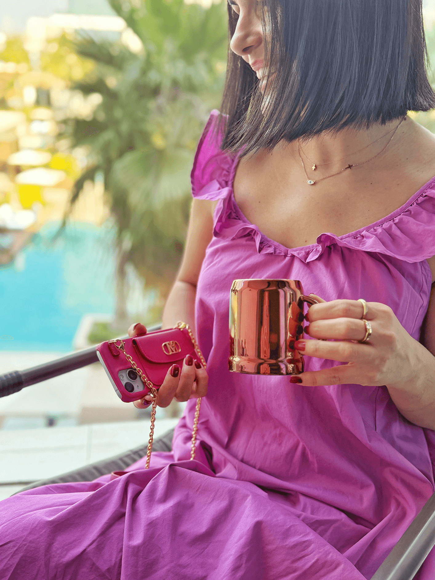 Mit seinem warmen Kupfer-Metallic erinnert er an Sonnenuntergänge in Marrakesch, Kaffeeduft in Lissabon und das Gefühl, überall zuhause zu sein. Er liebt den Aufbruch, das Neue, das Unperfekte. Und er bleibt trotzdem – als treuer Reisebegleiter durch jeden Tag.