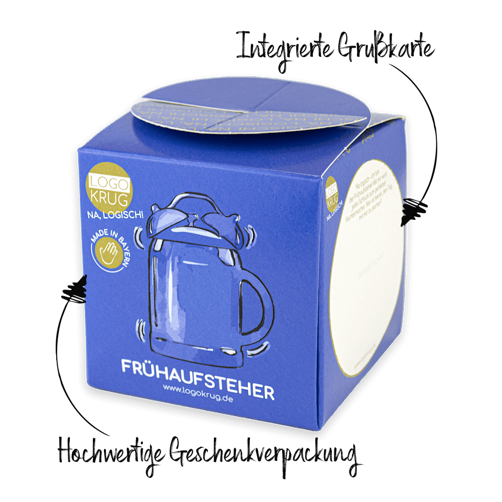 Er ist wach, bevor der Tag es ist. Der Frühaufsteher ist der LOGOKrug für alle, die mit dem ersten Licht denken, fühlen und planen. In seinem tiefen Saphirblau liegt die Ruhe des Morgens, die Klarheit des Neuanfangs und der stille Stolz darauf, schon weiter zu sein.Er liebt Routine, aber auch frische Ideen. Ein treuer Begleiter für alle, die im Morgengrauen Großes vorhaben.