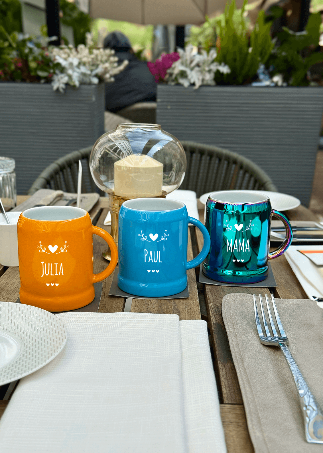Wähle aus 18 Farben und zwei Größen (250 oder 330 ml) und gestalte dein Krügerl mit einem personalisierten Motiv, das perfekt zu deinem Lieblingsmenschen passt.